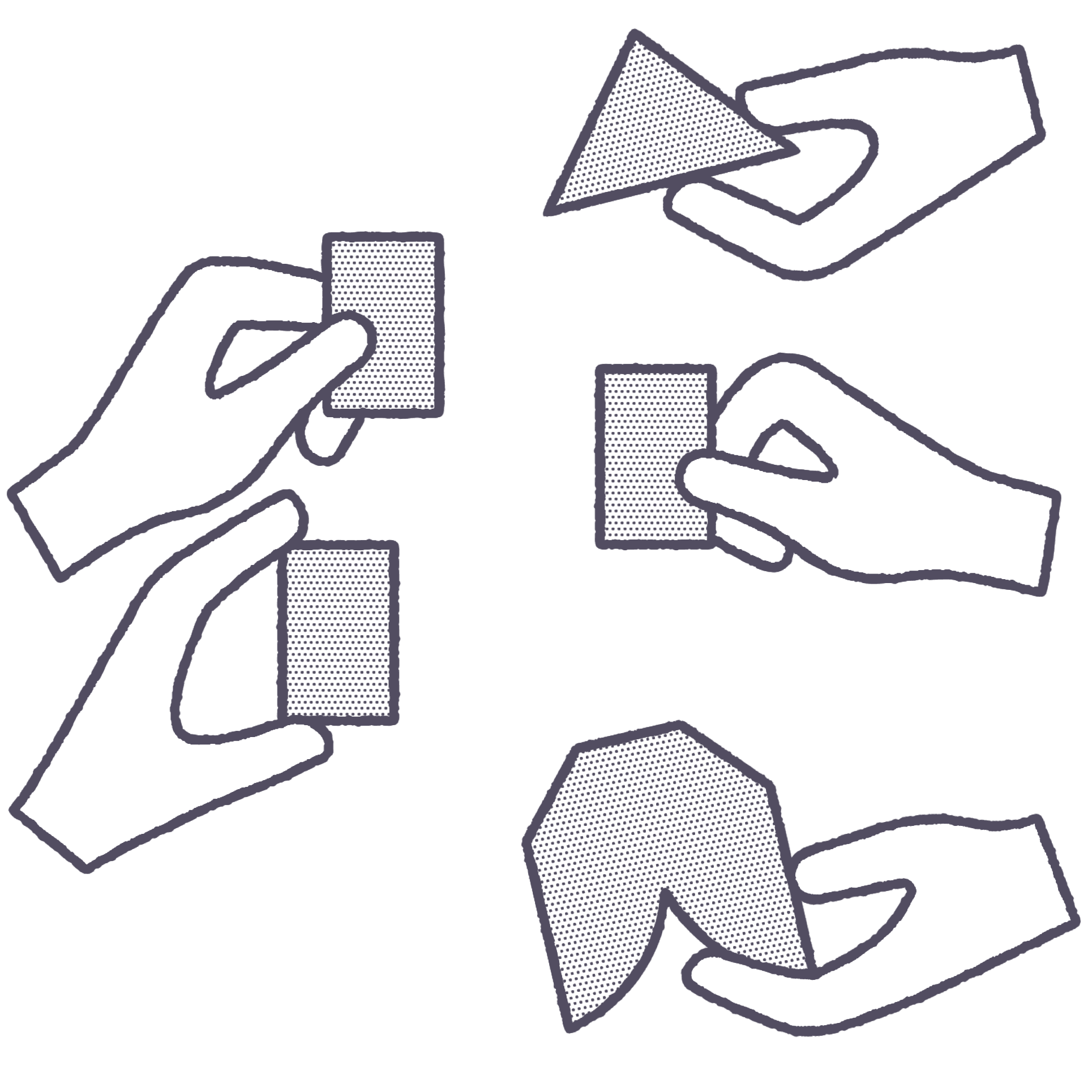 illustration of two hands holding a single pencil, symbolising collaboration